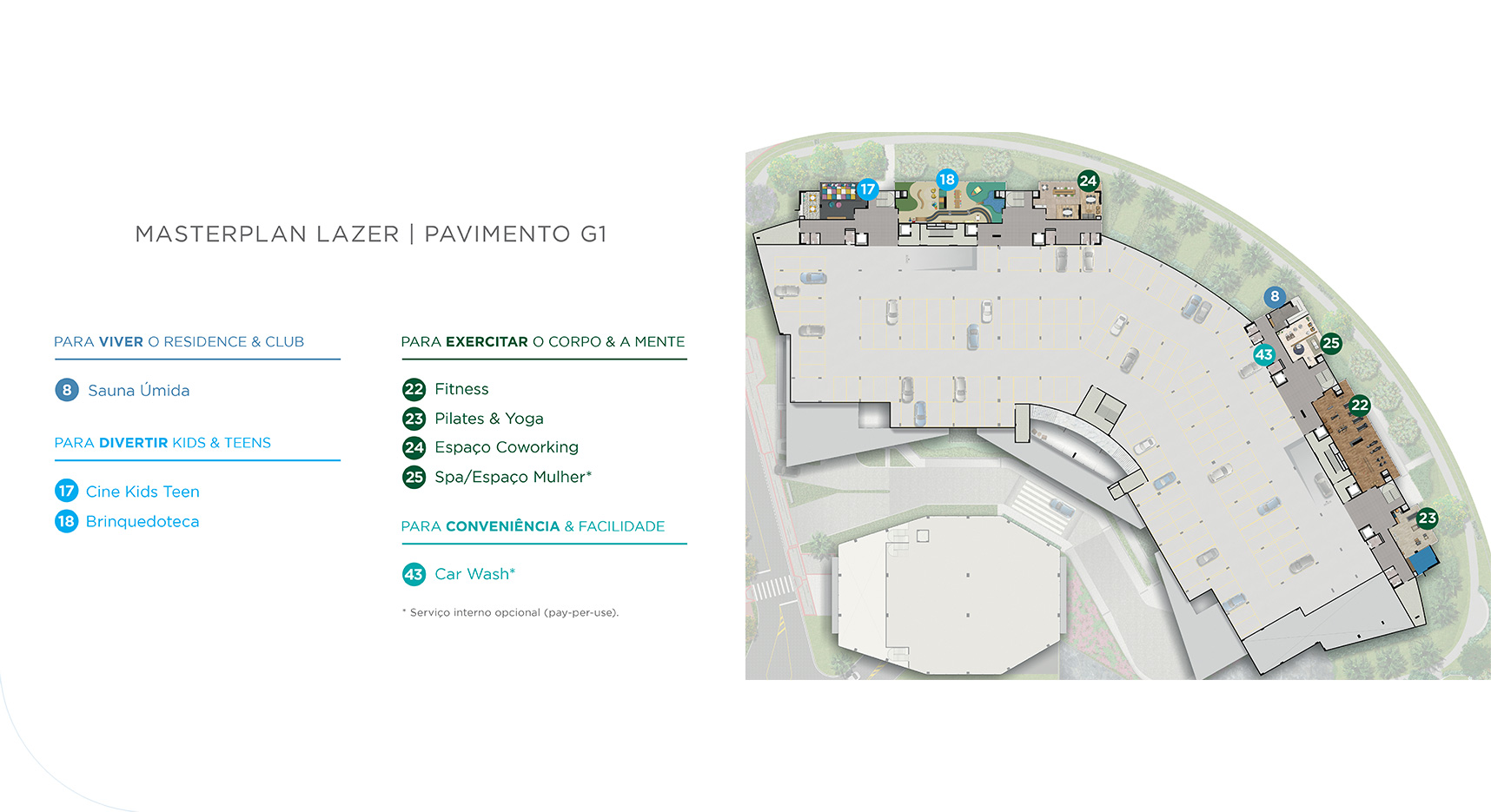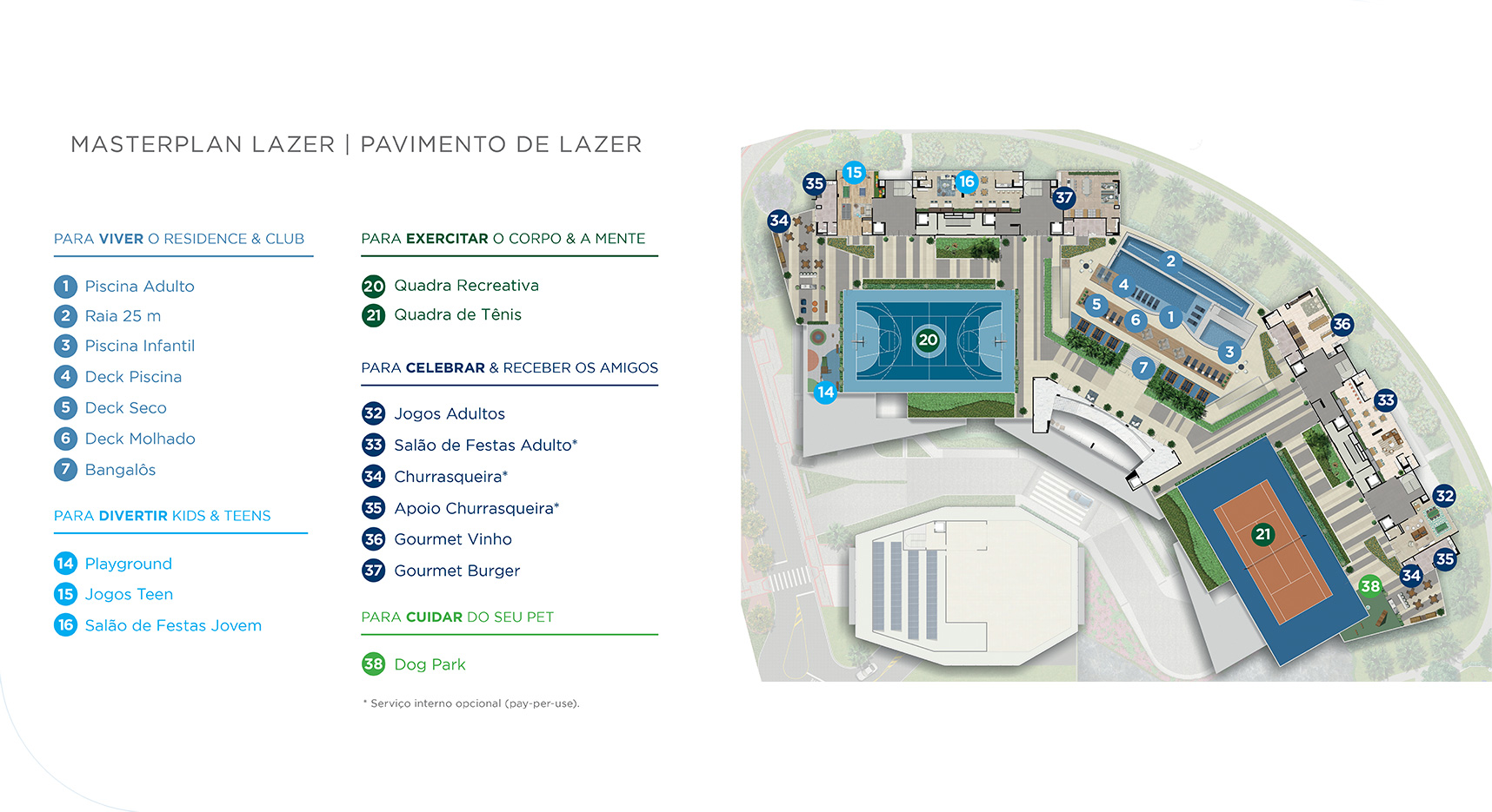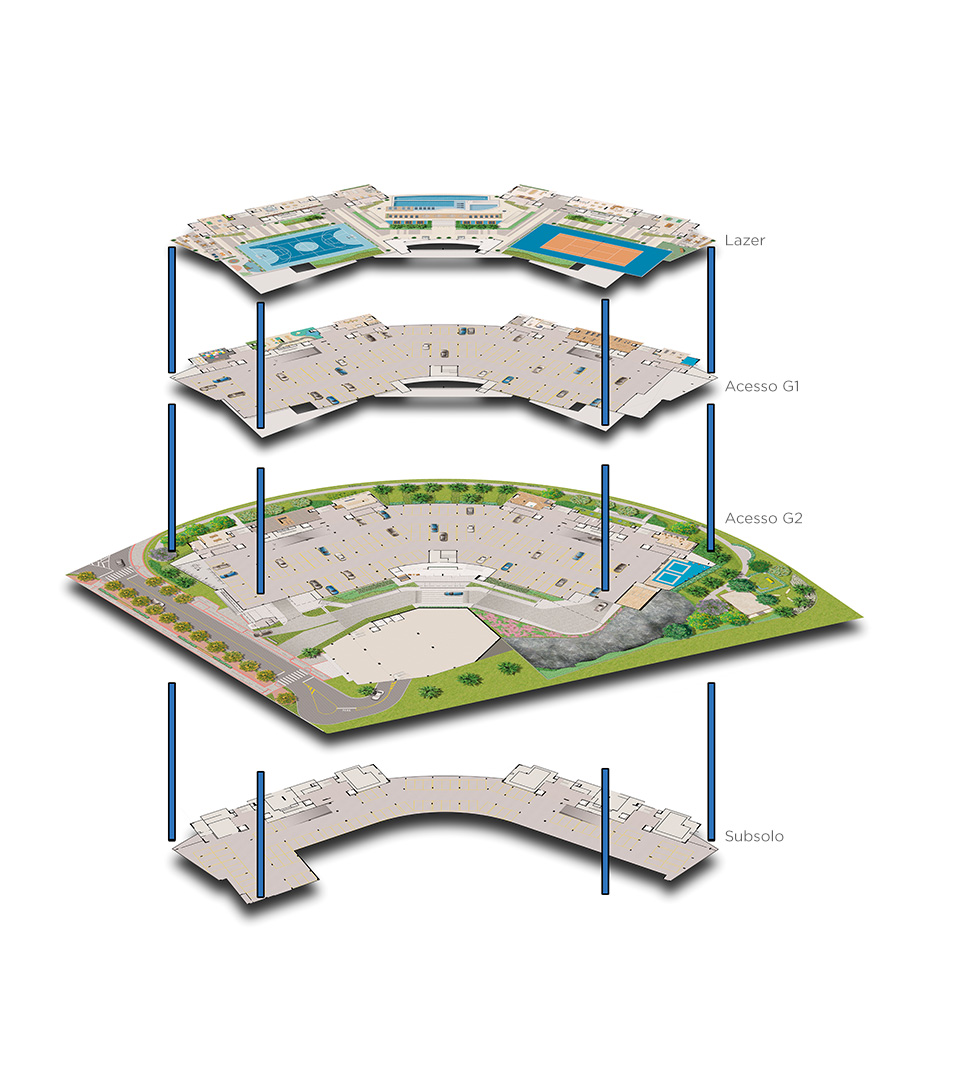Mais de 9.500 m² de lazer distribuídos em 3 pavimentos. Todo o lazer que um resort